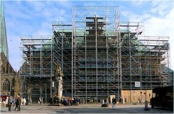 Sicherheit mit System, auch auf dem Flachdach, mit dem bewährten Allround-Gerüst.