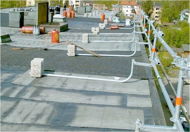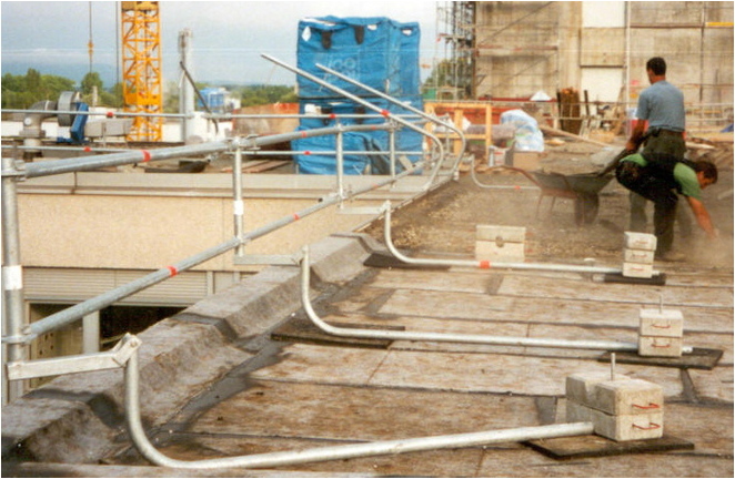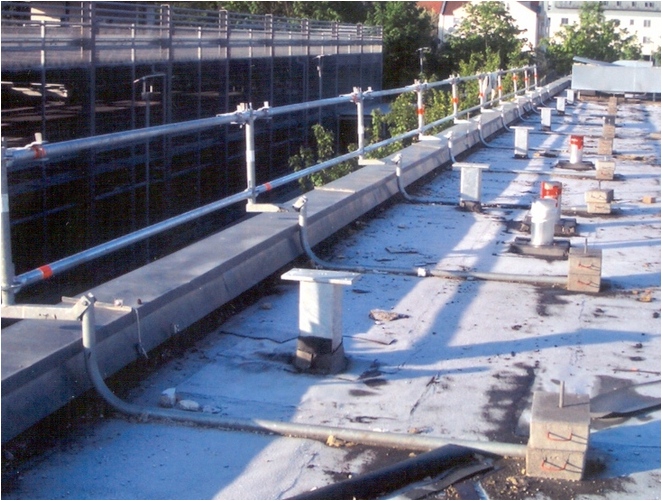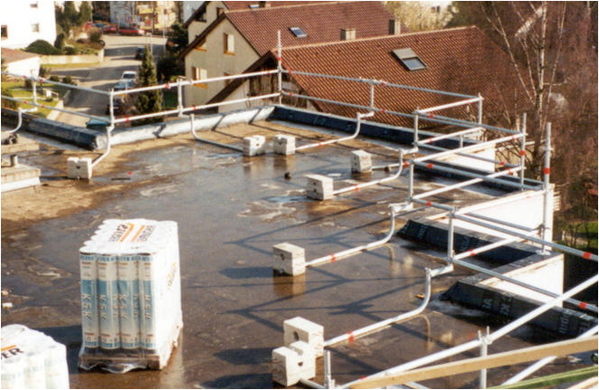 Sicherheit mit System, auch auf dem Flachdach, mit dem bewährten Allround-Gerüst.
