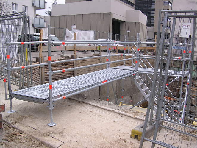 Ein schneller und sicherer Zugang zur Baustelle – eine weitere Anwendung aus dem „Baukasten“ des Layher Allround-Gerüstsystems.