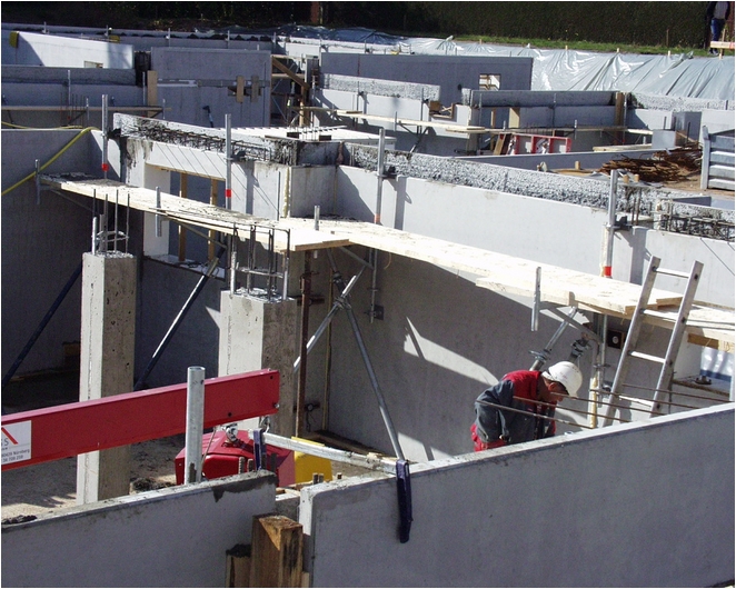 Mit dem Allround Hohlwandkonsolenadapter wird aus dem bewährten AllroundGerüst eine Einhängekonsole für Halbfertigteilwände.