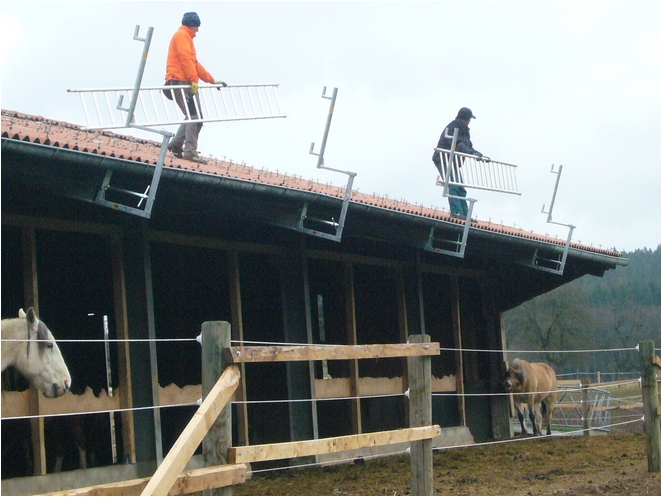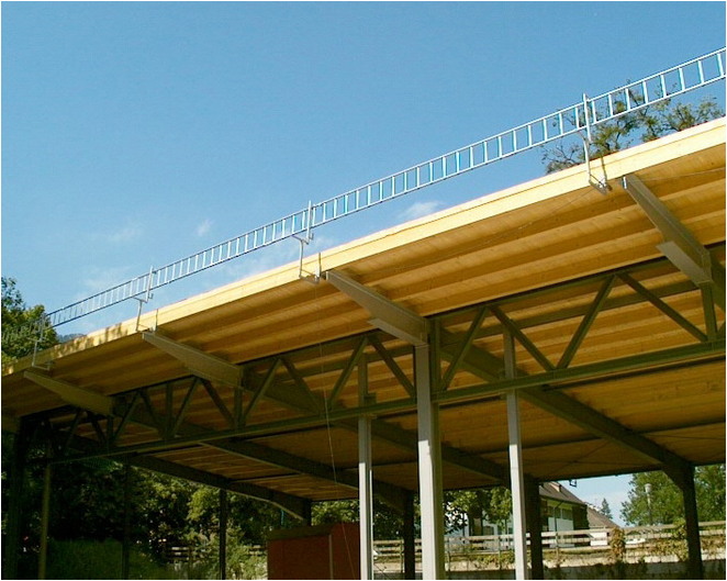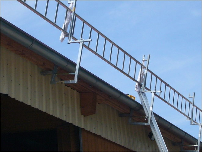 Das Layher Ortgang-Geländer ist die perfekte Ortgang-Absicherung. In Kombination mit dem Layher-Dachfang ist der Dachdecker im gesamten Dachbereich optimal vor Absturz gesichert.