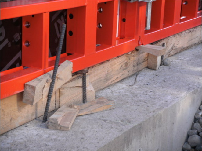 Mit 2 Layher Schalklemmen und einem bauseitigen Bewehrungsstab (d = 6 – 10 mm) können Abspannungen unter liegenden System-Schalungselementen Zeit- und Kostensparend ausgeführt werden.