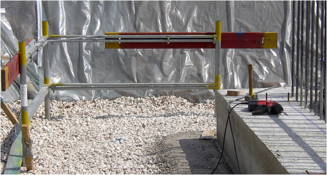 Ein standsicheres und stabiles Schnurgerüst ist Voraussetzung zur Festlegung von genauen Achsen und Winkeln am Bau.