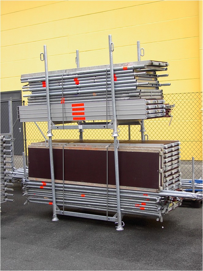 Mit 2 Paletten – 1 komplettes 70-er Gerüst lagern.