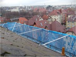 Der Layher Dachfang – Eine bewährte Dachschutzwand für mind. 50 cm lange, freiliegende Sparren mit einer max. Dachneigung von 60°.