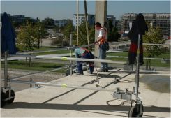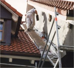 Sicherheit mit System, auch auf dem Flachdach, mit dem bewährten Allround-Gerüst.