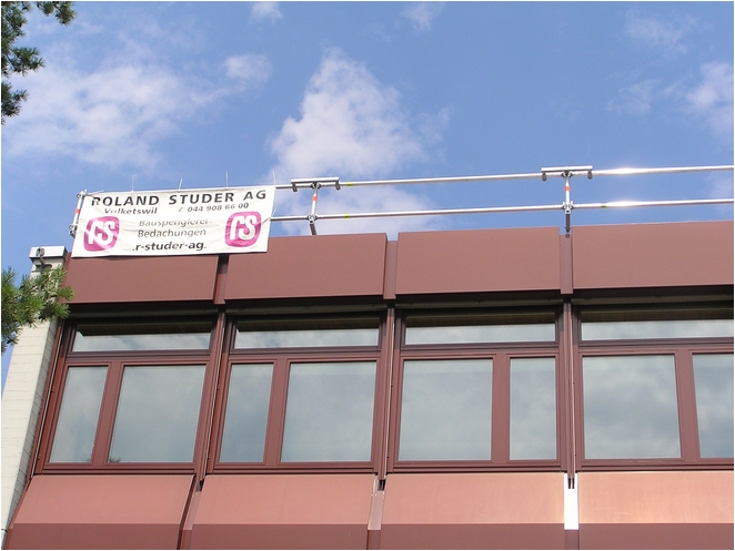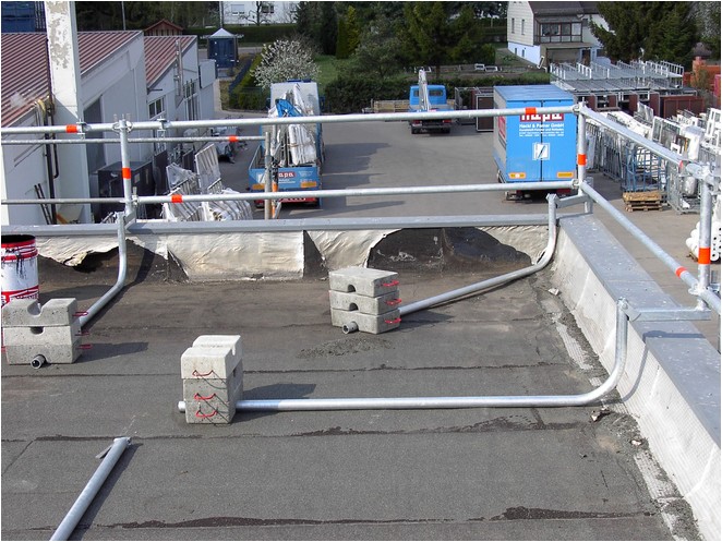 Sicherheit mit System, auch auf dem Flachdach, mit dem bewährten Allround-Gerüst.