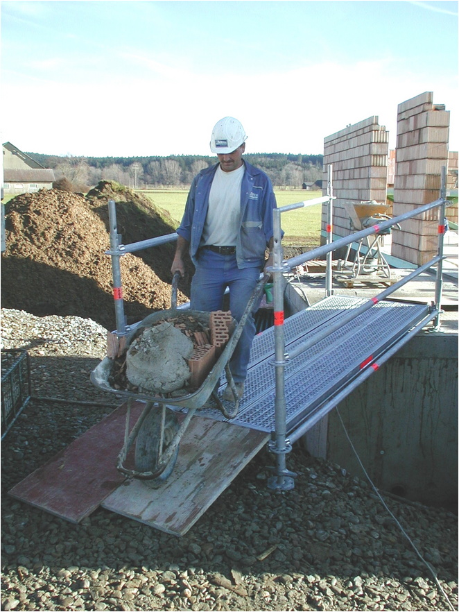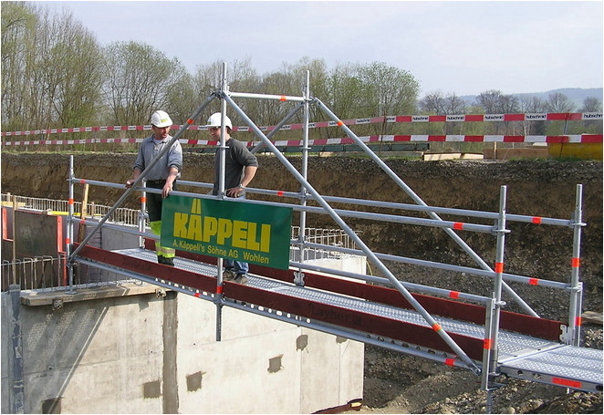 Ein schneller und sicherer Zugang zur Baustelle – eine weitere Anwendung aus dem „Baukasten“ des Layher Allround-Gerüstsystems.