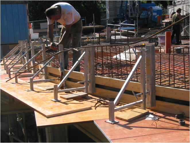 Die Layher-Justierabschalstütze ermöglicht ein präzises Abschalen von Bodenplatten, Balkonplatten und in einzelnen Bauabschnitten zu betonierende Massivdecken.