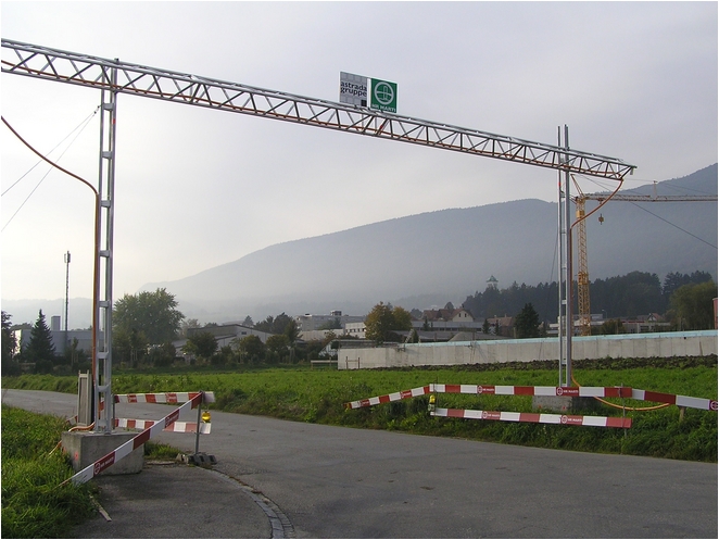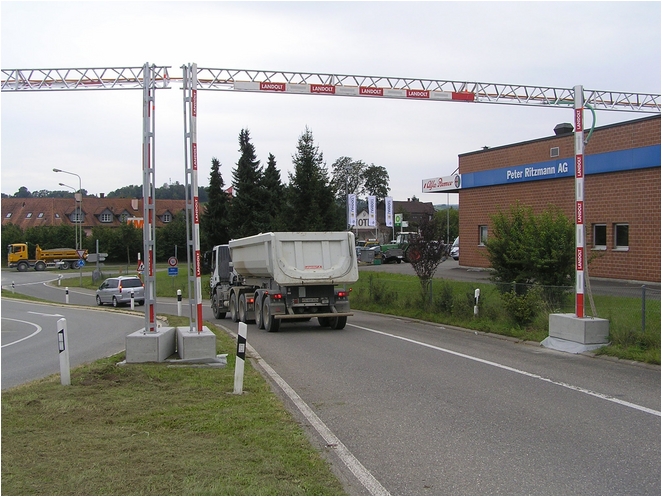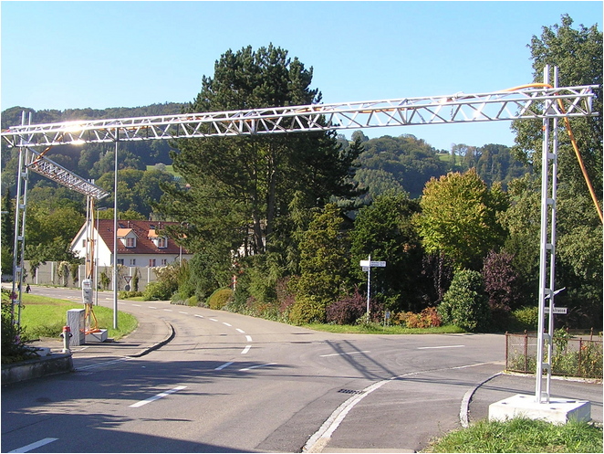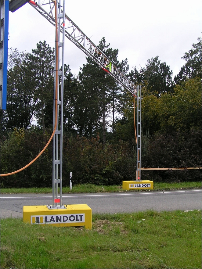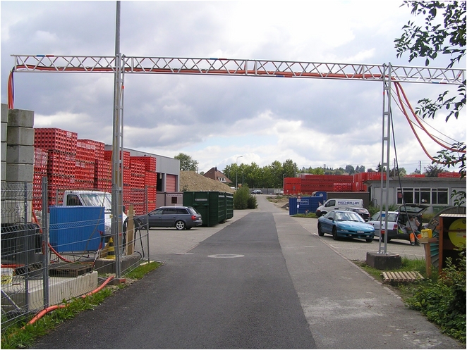 Eine schnelle und einfache Form einer Kabelbrücke erstellen Sie mit der Layher Dreieckstütze in Verbindung mit Alu-Dreieckgitterträger und bauseitigem Betonballast.