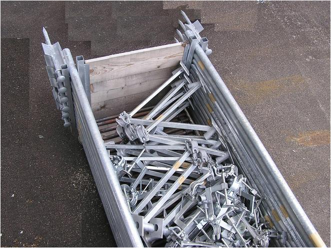 Zur Ordnung und Kommissionierung von bis zu 24 kompletten Schnurgerüsten für die Baustelle.Der Layher-Lagerbehälter kann auch zum Einlagern von Gerüstrohren mit Gerüstkleinteilen verwendet werden.