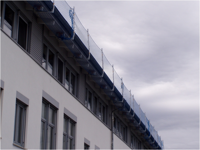 Der Layher Netzschutzwand-Rahmen ist eine Dachschutzwand dem Schrägdach von 20 ° – 60 °. Diese Schutzwand dient als Ersatz oder Ergänzung für das Layher- Blitzgerüst. Lange bzw. hohe Schrägdächer (> 5,00 m) erfordern zu den Traufschutzwänden zusätzliche Dachdeckersicherungen.