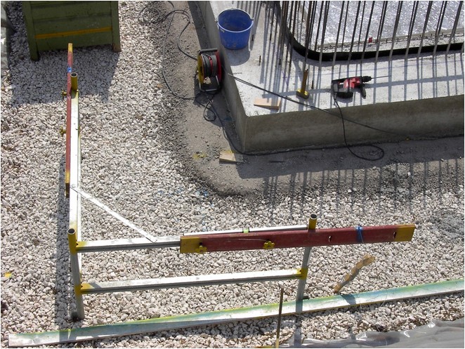 Ein standsicheres und stabiles Schnurgerüst ist Voraussetzung zur Festlegung von genauen Achsen und Winkeln am Bau.
